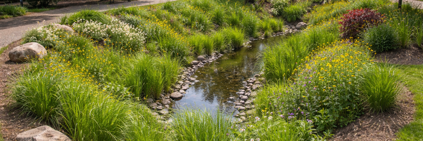 Een wadi is een groene, verdiepte greppel of kuil in stedelijk gebied of tuinen die regenwater opvangt, zuivert en langzaam in de bodem laat infiltreren. En de naam herbergt twee betekenissen!