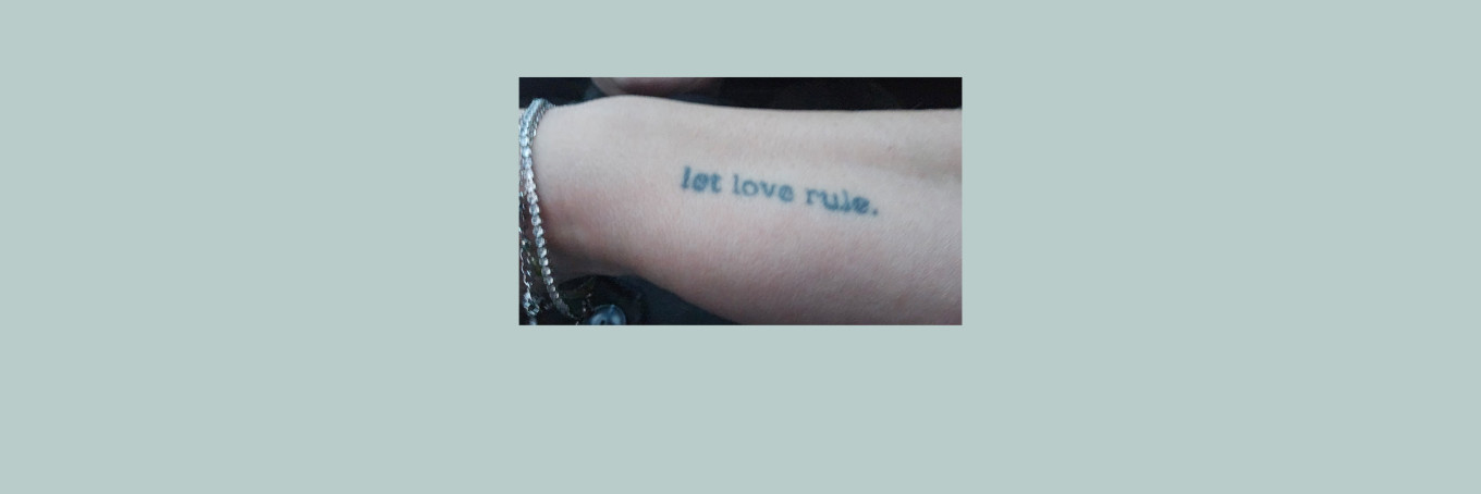 In KINK Tattoo Tales is KINK-dj Mick Hummel elke zaterdagmiddag op zoek naar de mooie verhalen achter muzikale tatoeages van mede-KINK'ers. Danielle ziet graag wat meer liefde in de wereld, en daarom heeft ze deze tekst van Lenny Kravitz op haar lichaam vereeuwigd.