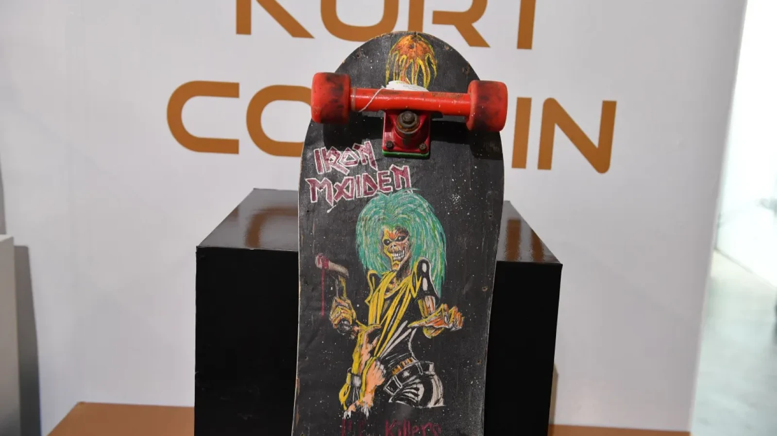 Het skateboard is een zogenaamd SIMS model uit 1985, ontworpen door skateboarder Jeff Phillips. Op het deck heeft Cobain de albumhoes van Iron Maiden's Killers overgeschilderd. Cobain en Phillips maakten allebei op dezelfde manier een einde aan hun leven. Kurt in april 1994, en Jeff een paar maanden eerder, december 1993.