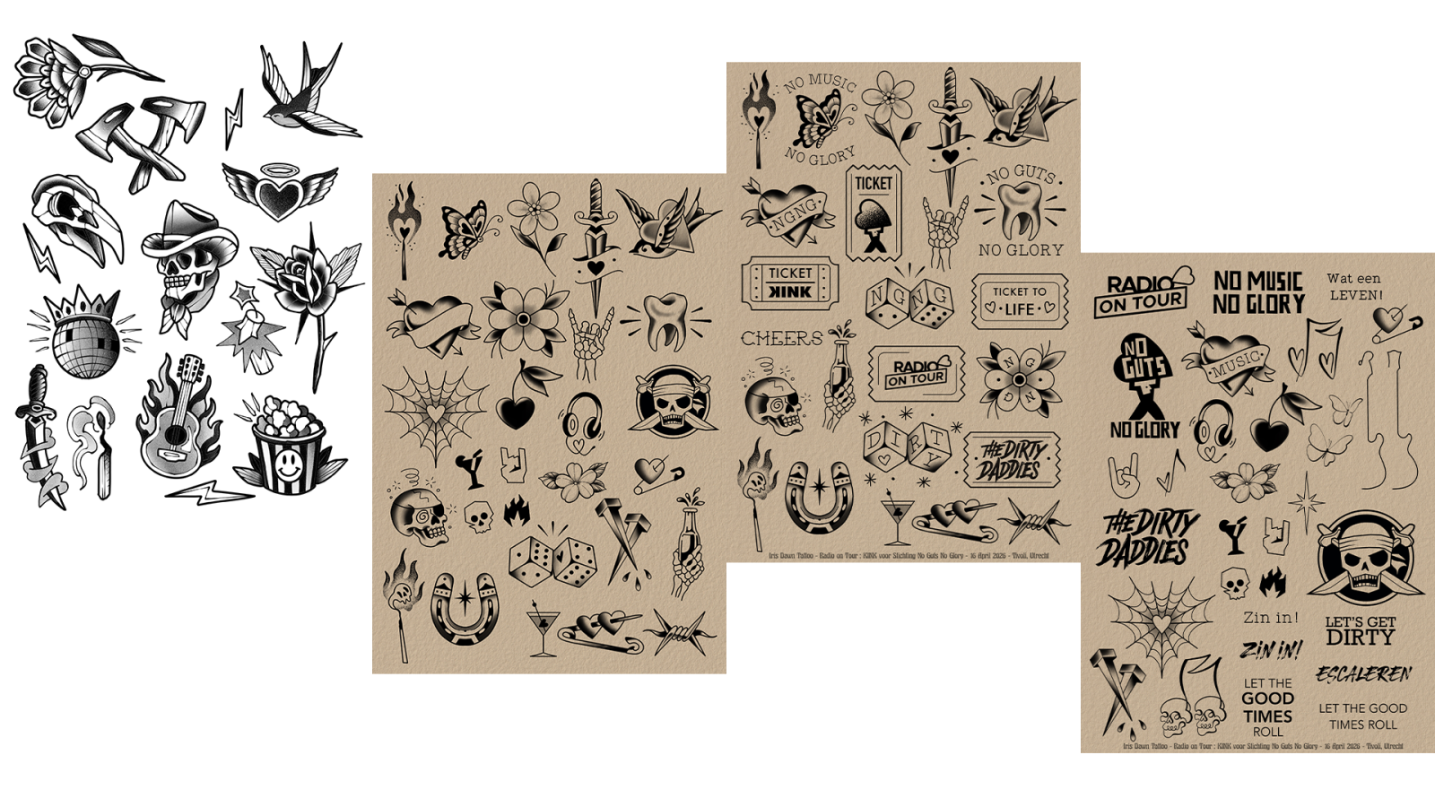 Wil jij mooi nieuw artwork laten tatoeëren én je steentje bijdragen aan Stichting No Guts No Glory? Goed nieuws: Mike en Ruud van tattooshop Eus gaan tatoeëren in Nobel, Leiden en The Dirty Daddies openen met professionals Brian Uitermark & Iris Dawn Tattoo een pop-up-tattoo-shop in TivoliVredenburg!