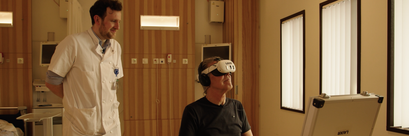 Arts-onderzoeker Samuel Max maakt ook deel uit van de onderzoeksgroep en ziet nu al de voordelen van de virtuele ervaring. “We halen patiënten als het ware uit het ziekenhuis en brengen ze op de eerste rij bij concerten en festivals. Ze voelen zich gelijk beter, ze voelen zich even geen patiënt. Daardoor ervaren ze minder pijn en minder angst en kunnen ze uiteindelijk eerder naar huis.”
