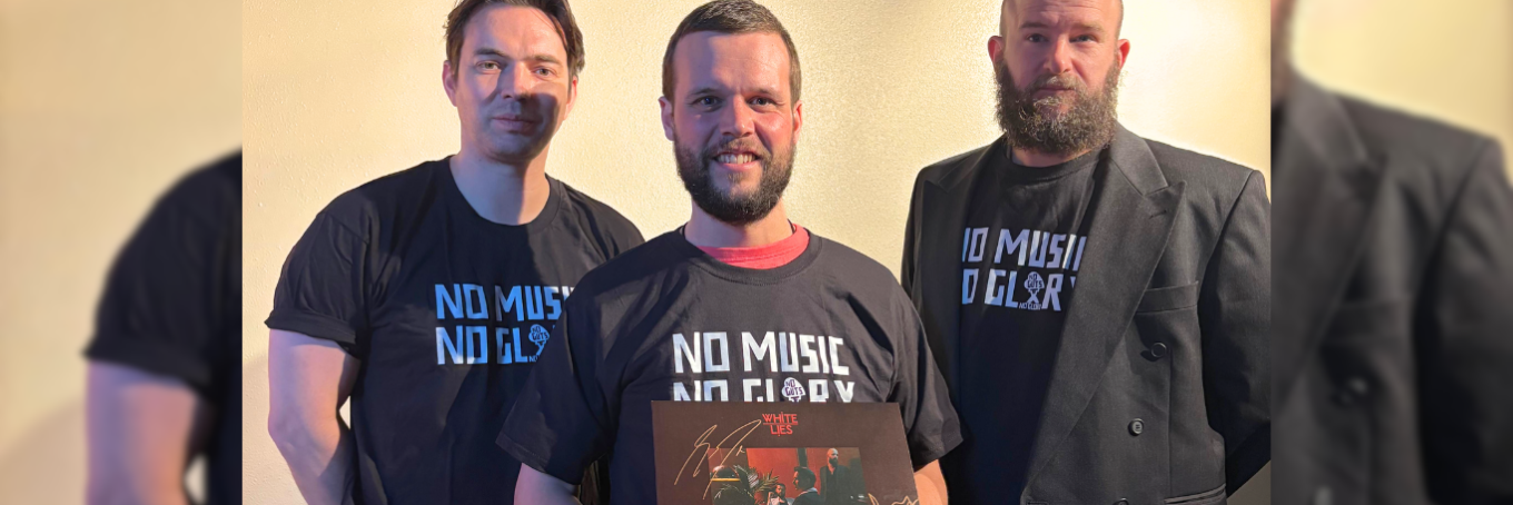 “Music is everything”, dat is wat White Lies ons vertelde tijdens hun shows in Paradiso. Daarom steunen zij No Guts No Glory, door het beschikbaar stellen van hun gesigneerd vinyl ‘Night Light’!